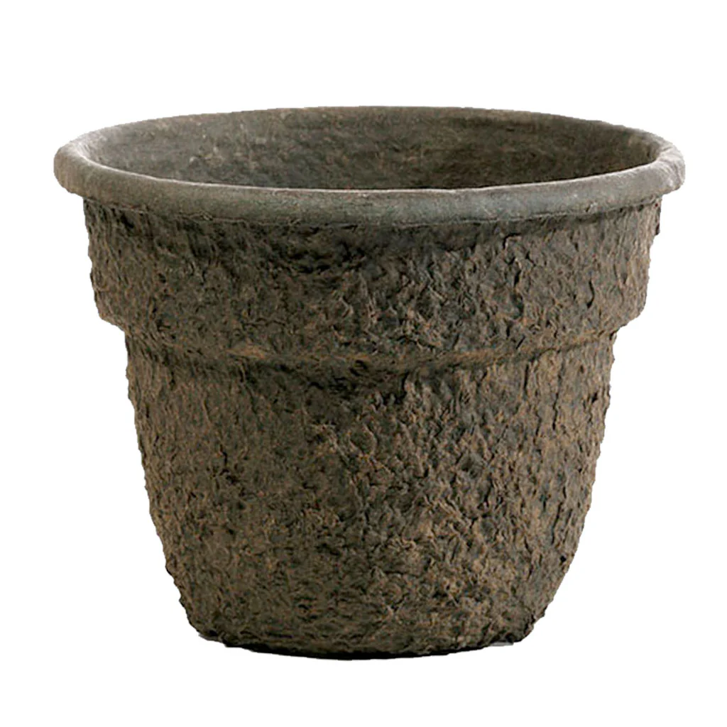 Containers are fiber molded, meaning they are made of recycled material, biodegradable, and usually decompose in about a year's time. This significantly minimizes waste production and also allows them to be planted directly into the soil.
